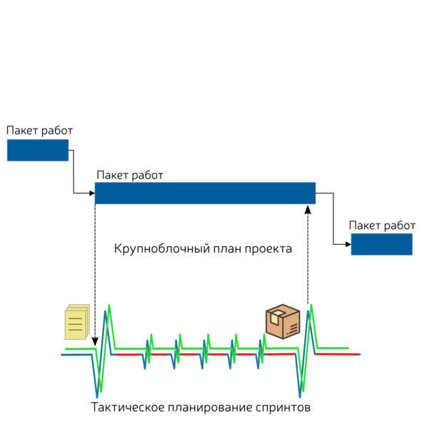 Уровень планирования проектов обеспечивает планирование очерёдности выполнения работ Организацией, задаёт понятные фокусирующие цели и обеспечивает контроль исполнения обязательств. Уровень тактического планирования спринтов обеспечивает короткие и понятные цели для сотрудников, реализующих проект, и учитывает высокую неопределённость способа реализации.
