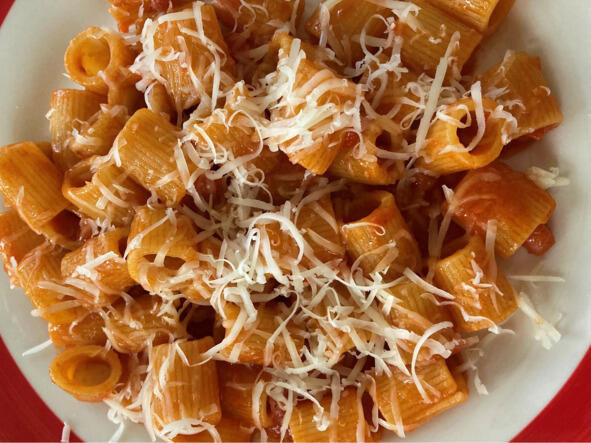 Классика традиционной римской кухни, соус для пасты, получивший свое название от города Аматриче в провинции Риети. 24 августа 2016 года Аматриче была почти полностью разрушена сильнейшим землетрясением. Когда мы первый раз туда приехали, прошло почти три года после этого страшного события, многие дома еще оставались разрушены, было очень волнительно смотреть на руины, но если переключить свое внимание на людей, а там живут невероятно сильные и позитивные люди, можно научиться у них важному: никогда не падать духом никогда даже когда все разрушено, нужно уметь начать все сначала.