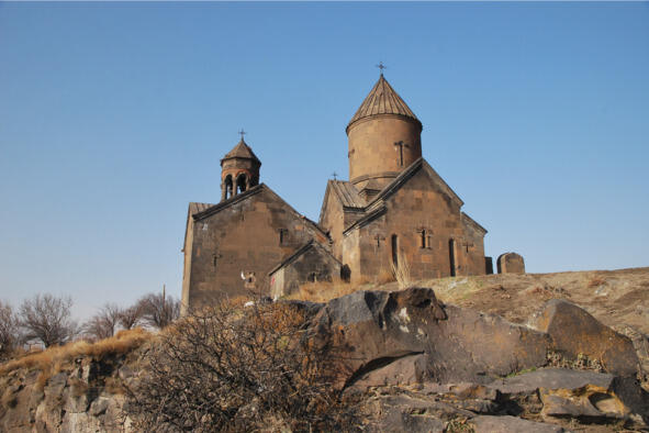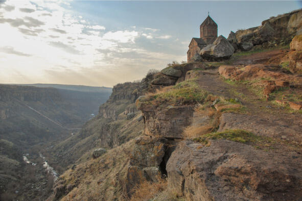 На краю ущелья замерли две обители. Ближний к Мугни монастырь Ованаванк (Hovhannavank), являющийся памятником Серебряного века, периода наибольшего расцвета армянской церковной архитектуры. В монастыре некогда хранился саван, в который был окутан Иисус Христос, и гвоздь, которым была прибита его правая рука. Старейшее здание на подворье базилика Святого Карапета, построенная Григором Просветителем в начале IV века. Стены храма богато украшены барельефами и орнаментами с христианскими мотивами. Обитель окружают остатки сложенных из камня стен, к северной части которых примыкает старинное кладбище с вытесанными из цельного камня надгробиями, украшенными витиеватыми узорами и надписями на армянском.
