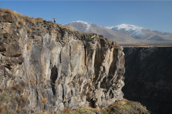 Сотрудники полиции были очень удивлены нашему маневру, но, нужно отдать им должное, тут же запросили по рации обстановку в районе, сообщив, что снег сохранился местами, в основном в низинах, поэтому испытывать судьбу не советуют. Однако и этого Вардану показалось мало. Пока мы фотографировались на фоне букв армянского алфавита, он переговорил с водителем автомобиля с большим клиренсом, направляющимся в сторону гор, и оставил ему номер своего телефона. Минут через сорок тот перезвонил, сообщив о бесполезности этой затеи.