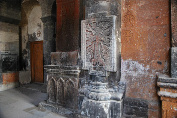 К этому времени мы уже были на подступах к Ошакану, где под алтарем одноименной церкви XIX века покоятся останки Месропа Маштоца, создателя армянского алфавита, основателя армянской письменности и литературы. Будучи монахом, спасение армянского государства, находящегося под игом Персии, Маштоц видел в укреплении христианской веры, донести которую до народа можно было только путем перевода Библии и других аналогичных книг на армянский язык, существующий в те времена лишь в речевом исполнении. На создание письменности у Маштоца ушло много лет, в ходе которых он и его ученики изучали алфавиты разных народов, сопоставляли формы знаков с их произношением, искали созвучные с армянским языком буквы, пытаясь вникнуть в их смысл и структуру.