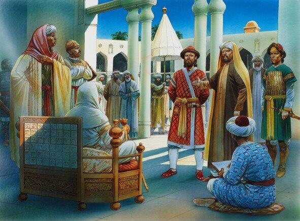 Bahira qurayshiylarning qoʻnogʻiga keladi. U savdogarlar bilan uchrashib, ularni oʻzinikida mehmon boʻlib ketishni taklif qildi.