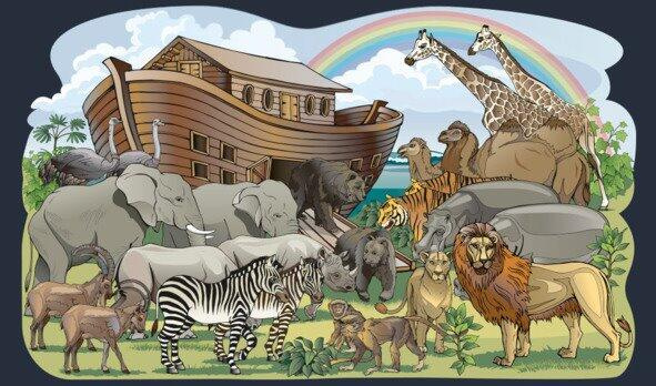 Yomgir kop kunlar va tunlar yog`di. Barcha toglar, hatto eng baland choqqilar ham suv ostida qoldi. Lekin kunlarning birida yomgir toxtadi. Suv asta-sekin pasayib, katta kema tog ' yonbagriga chiqib qolgi. Yer quriganida, barcha odamlar va hayvonlar yerga tushdilar.