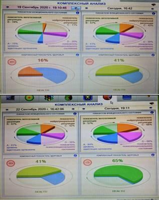 В процессе исследований и произведённых практик по удалению энергетических субстанций разного рода было выявлено, что после их удаления от человека многие жизненные показатели изменились в лучшую сторону более чем в 2 раза. В том числе, и энергобаланс. На фото ниже приведены эти показания.