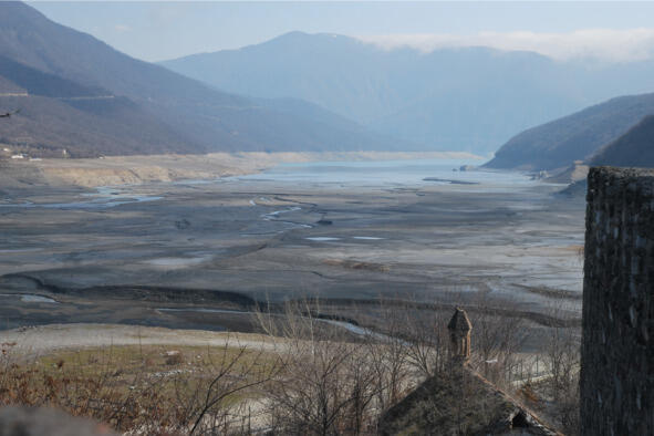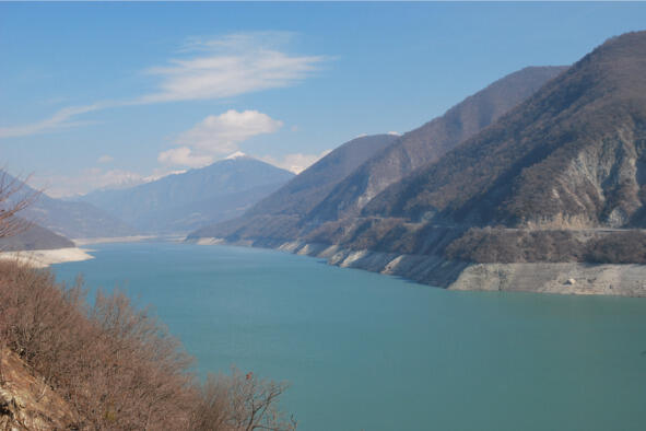 Мы прилетели в Тбилиси 22-го вечером, завезли вещи в отель Marlin, что в нескольких шагах от площади Свободы, да прогулялись по округе, больше ради променада, нежели в попытках что-либо рассмотреть в сгущающихся сумерках. А на следующий день, с самого утра, отправились вместе с Зурабом на первую нашу экскурсию, в Казбеги. Или, если следовать заявленной программе, по маршруту: Жинвальское водохранилище, крепость Ананури, село Степанцминда (Казбеги), Гергетская (Троицкая) церковь и Дарьяльское ущелье.