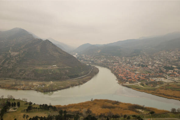 Слияние Куры и Арагви, справа раскинулась Мцхета