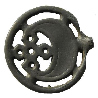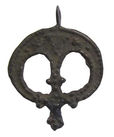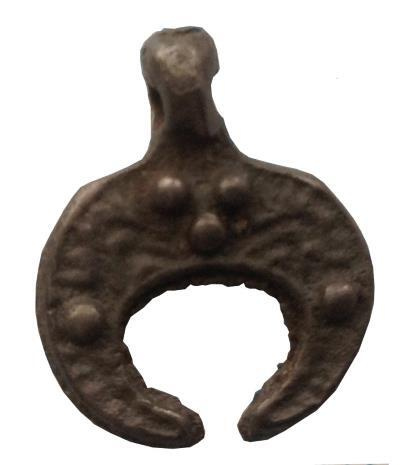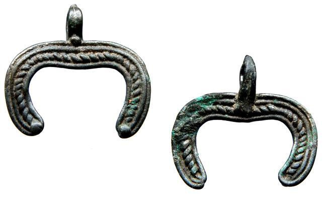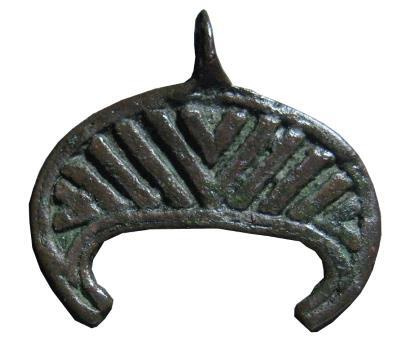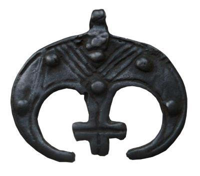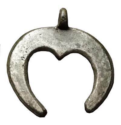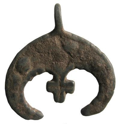 Наряду с крестом на Руси был чрезвычайно популярен другой нательный знак, идентичный рассматриваемому «полумесяцу», с той только разницей, что носился он «рогами» вниз, поскольку ушко для цепи или веревки прикреплялось к выпуклой стороне. Это был распространеннейший оберег, который в современной археологии получил название «лунница». По неизвестной причине археологами был сделан вывод, что это оберег, который носили в основном женщины. Возможно, причиной послужило то, что луна и лунные циклы традиционно связаны с женской энергетикой и, соответственно, атрибутикой (Рис. 15Рис. 20).
