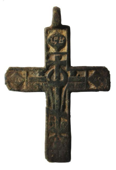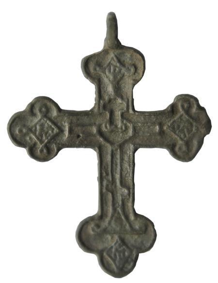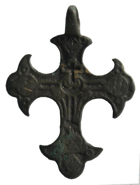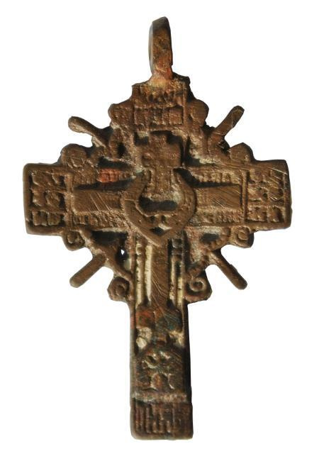 Однако при этом имеются в наличии и весьма странные лунницы, которые истолковать в качестве женских оберегов будет затруднительно. Дело в том, что эти лунницы, совмещены с изображением креста. Крест у таких артефактов помещен внутрь полумесяца так, как это представлено на рисунках (Рис. 21Рис. 24).