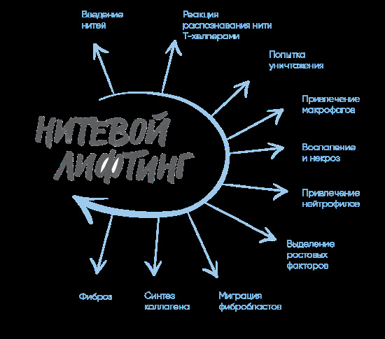Даже якобы безопасные мезонити будут разлагаться у вас под кожей. И воспаление при их введении развивается неизбежно. Классический механизм развития фиброза всегда начинается с попадания в организм «пришельца».