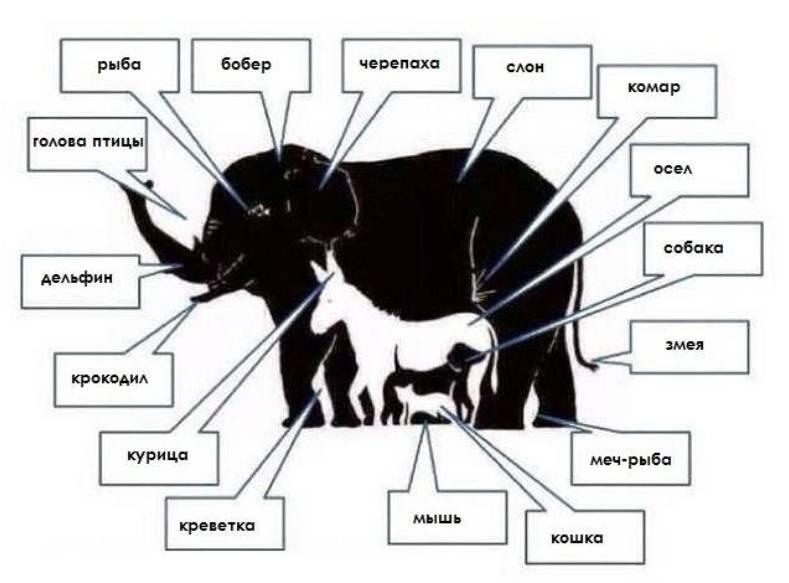 Внимательно посмотри на картинку и попробуй разглядеть как можно больше зверей. Что бы не запутаться, запиши всех зверей которых нашел