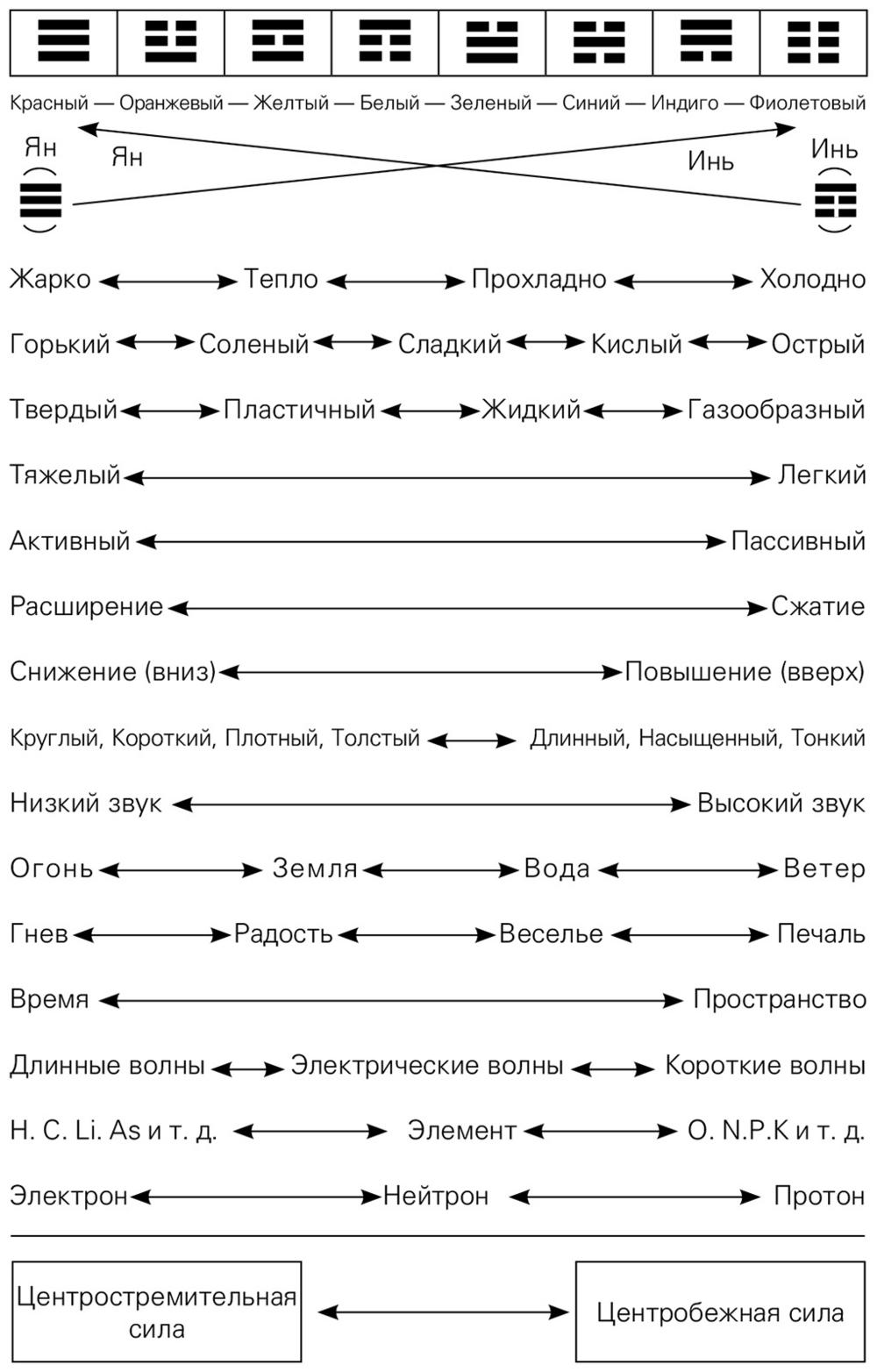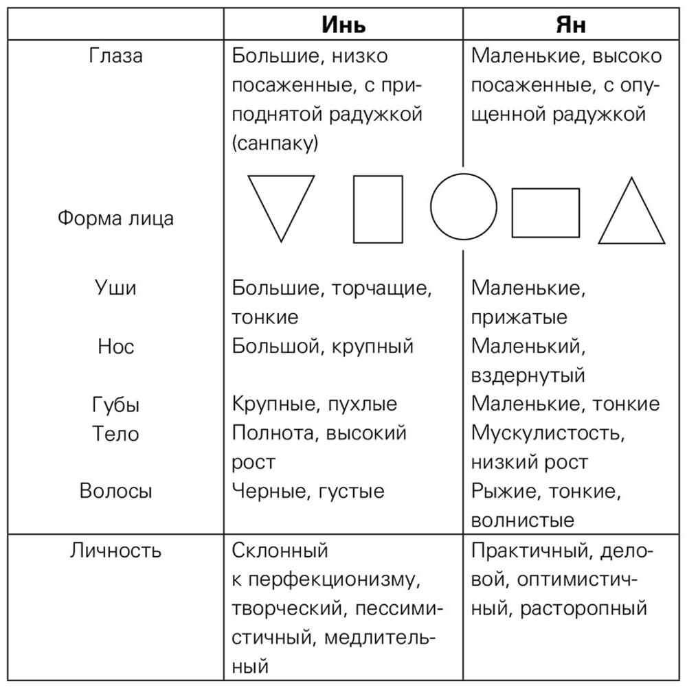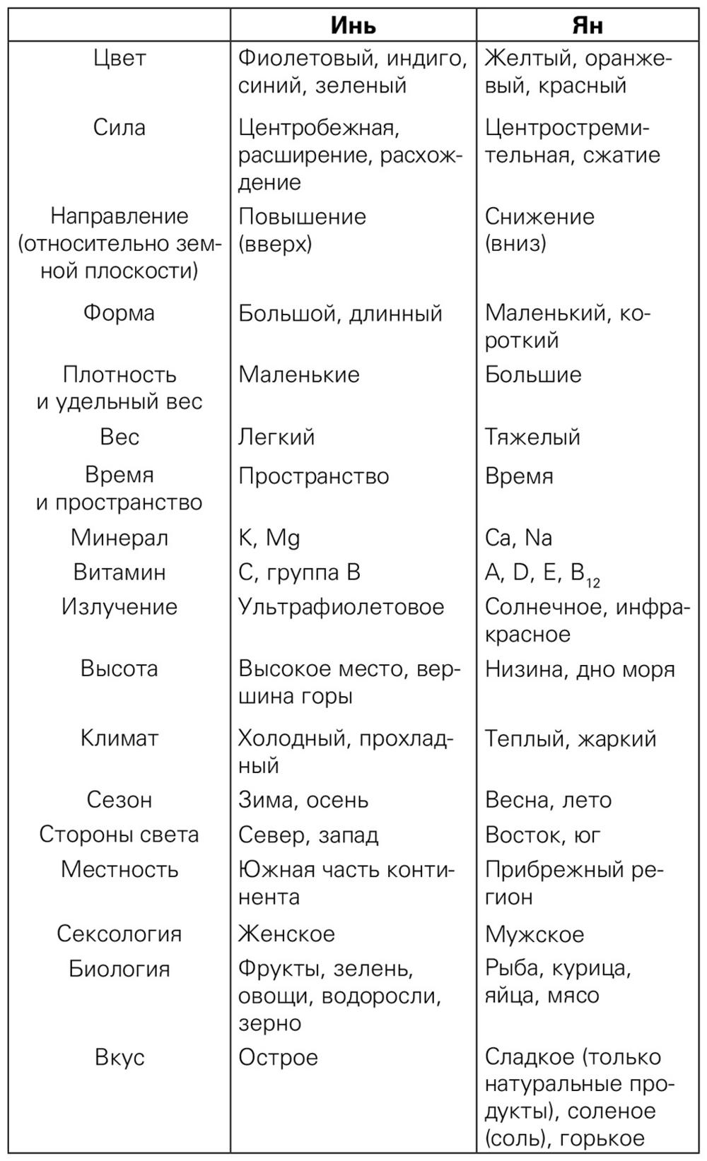 Таблица 2. Аспекты инь и ян.