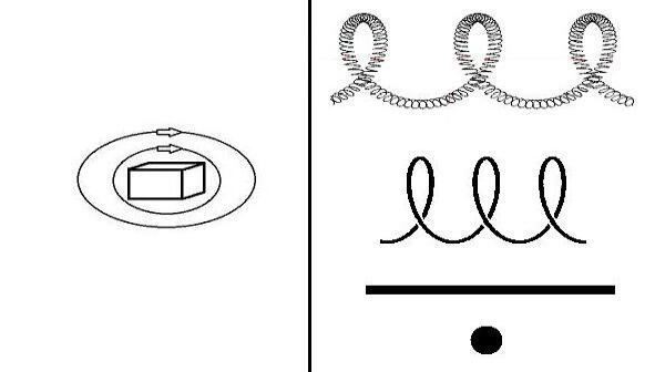 В свою очередь такую спираль для упрощения отображения можно опять обозначить на плоскости в виде более толстой линии, а затем и точкой.