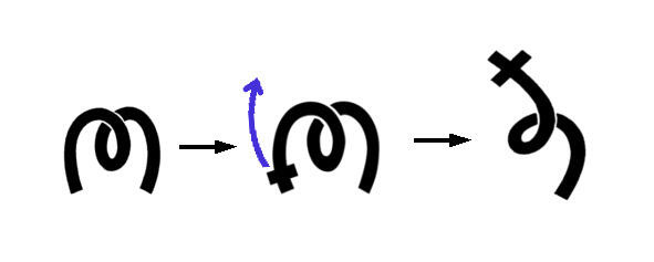Знак «Герьвь» образуется путём подъёма вверх к небесам правой ноги в знаке «ам».