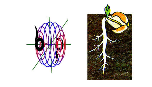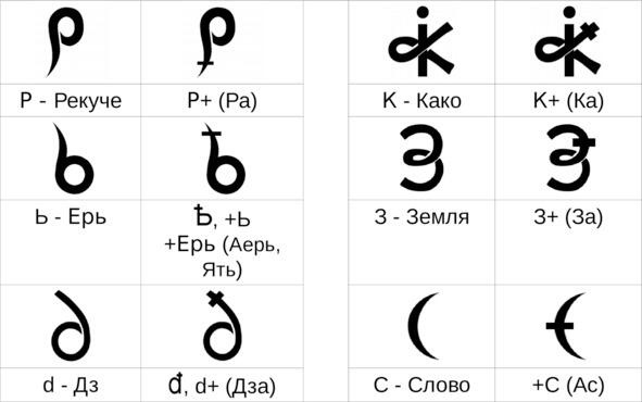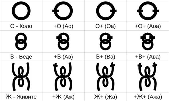 Например, процесс прорастания корешка из «семени» обозначается символом «Рекуче», и дальнейшее разрастание «корней» обозначается знаком «Ра» (Солнце Речи Реченьки, т. е. Реки от Речки из единого центра).