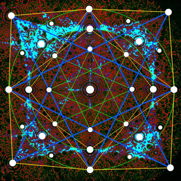 Далее эту матрицу мы поместим в кубический ящик с двигающимися стенками. После чего начнём сдвигать все шесть стенок к центру ящика одновременно, пропорционально, не изменяя общую геометрию куба. В следствие этого мы увидим, что торы (сферы) начнут приобретать форму, близкую к кубической.