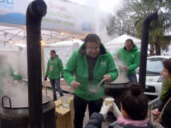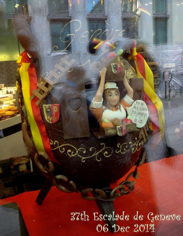 Но что не отменено в Женеве, так это массовая продажа шоколадных котелков всевозможных объёмов, размеров и начинок, причём с каждого проданного (купленного) котелка 50 сантимов отчисляется в фонд Общества 1602 года!
