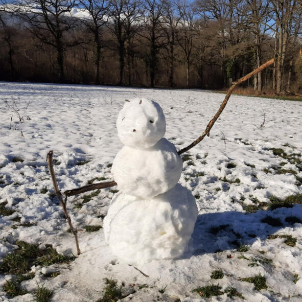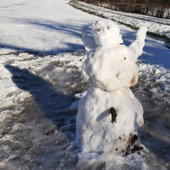 А без Снеговика пока не обойтись, особенно после обильного снегопада при нулевой температуре, когда снег сам просится, чтобы из него что-то лепили.