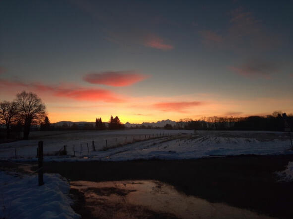 Вышел на/к (берег, в поле, к горе), глянул на (реку, поле, гору, цветы, снегА, отражение):