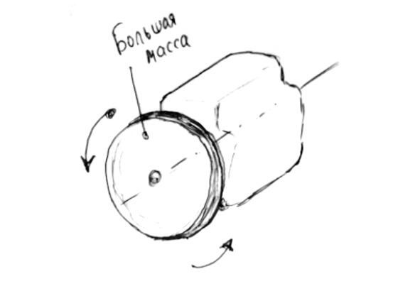 Именно масса заставляет его длительное время вращаться по инерции, что и является следствием работы первого закона.