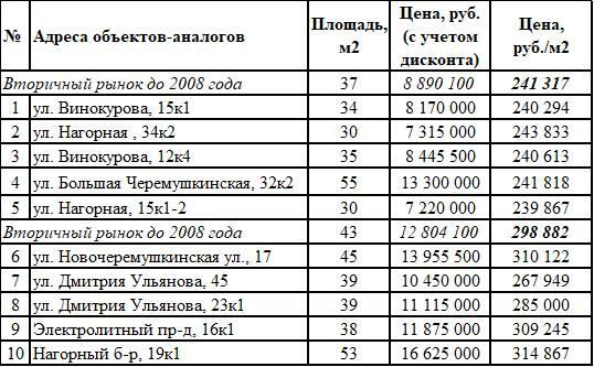1) квартиры-аналоги, расположенные в домах, построенных до 2008 года