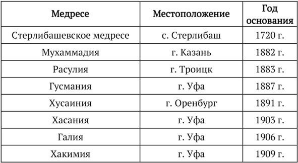 Мы посмотрели, какие основные идеи существовали в указанный период. Однако важно остановиться на том, какие образовательные проекты работали в конце XIX начале XX в. Медресе на тот момент было центром культурной и духовной жизни. Вот лишь несколько жемчужин духовной традиции, которые дали мусульманским народам Урало-Поволжья просвещенческий импульс: