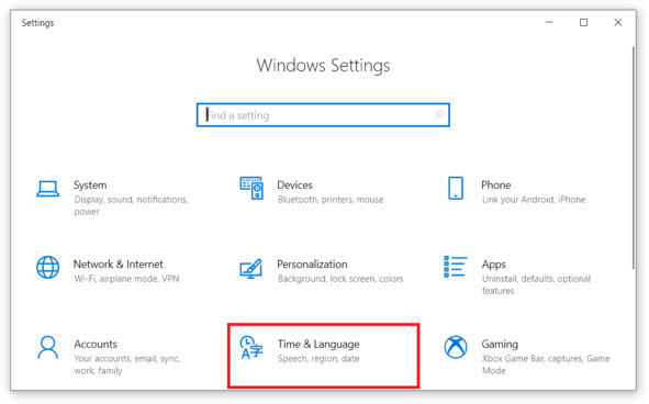 Далее в меню настроек ОС выбираем настройки языка: Time & Language, см. рис.