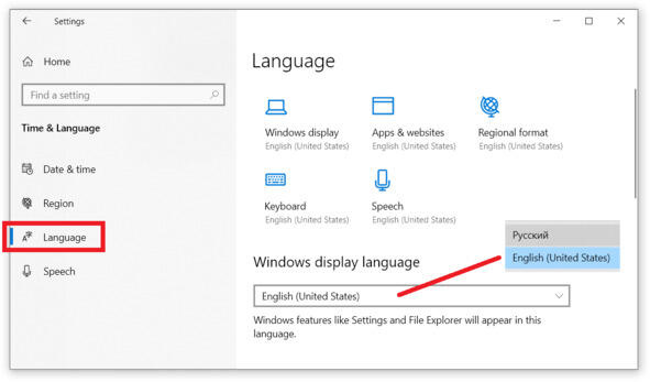 Windows 10 позволяет переключить язык интерфейса без переустановки ОС.
