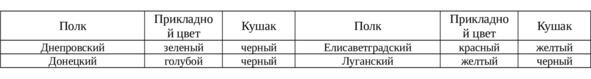 Таким образом видно, что Елисаветградскому полку установлено красное приборное сукно и желтый кушак.