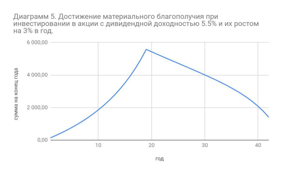 Вот расчет для случая с дивидендами, равными 5,5 %, которые не меняются из года в год: