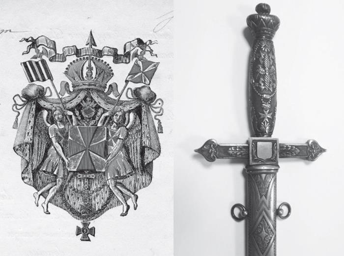 Герб ордена и посвятительный тамплиерский меч Первой Французской империи