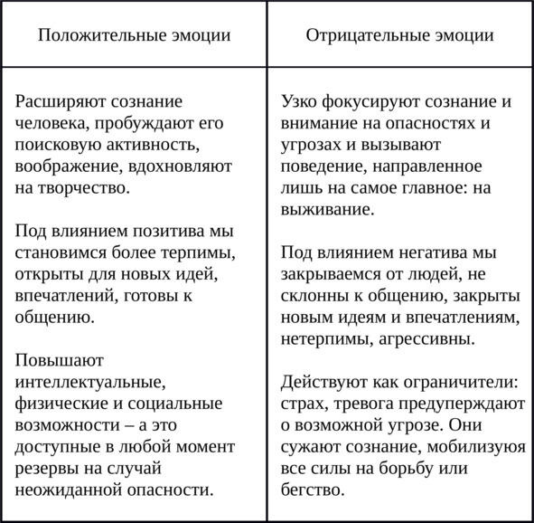 В 2000 преподаватель Мичиганского университета Барбара Фредриксон в своей работе показала, что «у положительных чувств, помимо того, что они создают хорошее настроение, есть иное предназначение»: они сыграли важную роль в процессе эволюции. Впрочем, нельзя сказать, что отрицательные эмоции менее важны. Важны и те, и другие, просто в процессе эволюции они выполняли разные функции: