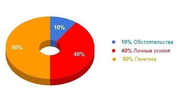 от наших личных усилий и целенаправленных действий на 40%.