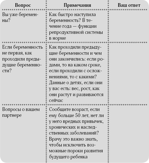 В первую очередь врач должен выяснить, нет ли проблем, которые могут осложнить течение беременности.