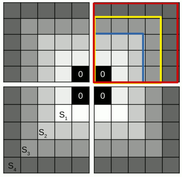 Следующие рисунки представляют вписанные друг в друга гиперкубы для случаев размерностей пространства n = 2 то есть плоскости: