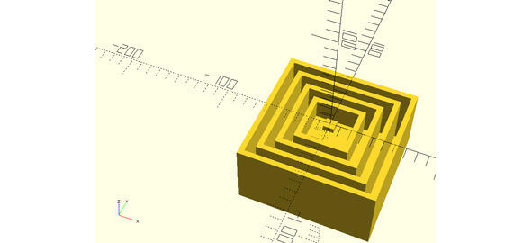 Рис. 2.3. Сечение (пронзание) трёхмерного куба двумерной плоскостью. Между слоями сделан единичной толщины сделан зазор, также равный единице, для наглядности.