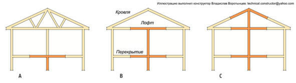 На рисунке 9.5C все внутренние стены являются несущими, так как они воспринимают нагрузки с кровли, перекрытия лофта и с цокольного перекрытия.