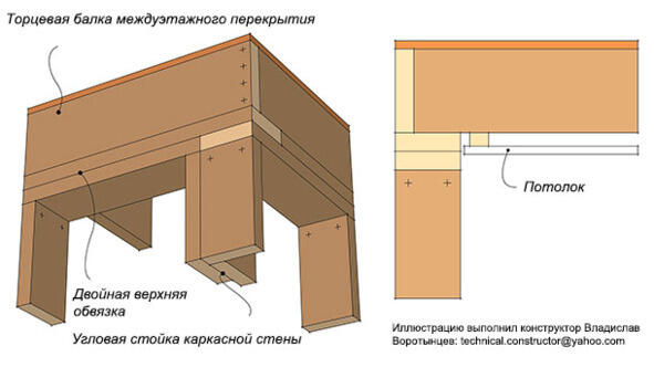 Верхняя обвязка каркасной стены
