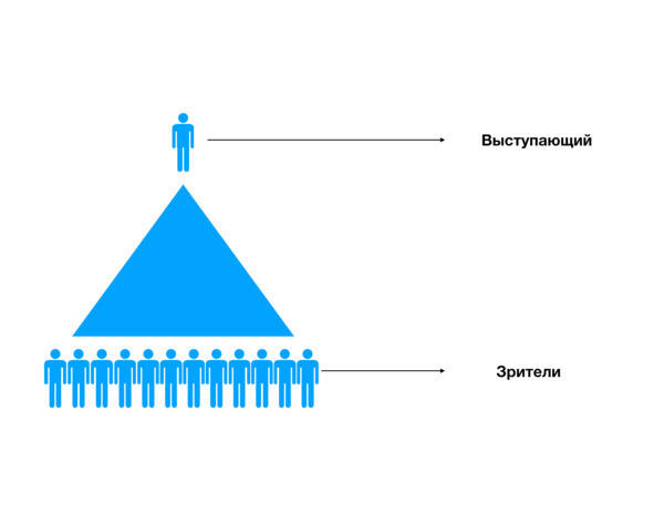 Выступающий располагается в вершине треугольника относительно флангов зрителей