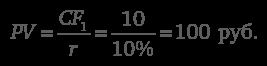 Предположим, что начиная с шестого года и в течение неопределенно длительного срока проект будет приносить нам доход в размере 10 руб. в год. В этом случае его терминальная стоимость может быть рассчитана с помощью формулы перпетуитета: