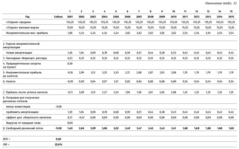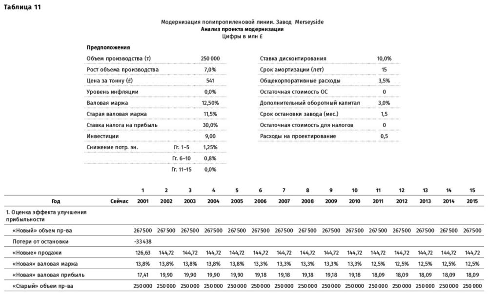 Сейчас мы попробуем оценить все описанное с точки зрения работы большой компании. Во-первых, давайте подумаем, откуда взялся проект. Автор (Брейди) директор завода. В чем его мотивация в проекте? Только ли это желание повысить эффективность? На самом деле мотивация может быть разной. Во многих случаях производственникам хочется работать на новом оборудовании. Это совершенно нормально. С новым оборудованием меньше операционных проблем. Уменьшаются простои, легче выполнять производственный план, новые инвестиции дают некую уверенность в завтрашнем дне и отсутствии необходимости будущих увольнений. Вместо постоянной тяжелой борьбы с издержками, где вы сражаетесь за каждую копейку (в данном случае пенс) себестоимости, за счет нового оборудования вы сразу сможете сделать рывок в ее снижении. Да и просто приятнее работать, когда вокруг новое оборудование, а не проржавевшие трубы. Для чего я это говорю? Очень просто при анализе инвестиционного проекта надо учитывать мотивацию тех людей, которые представляют данные.