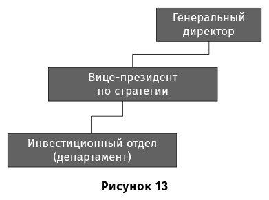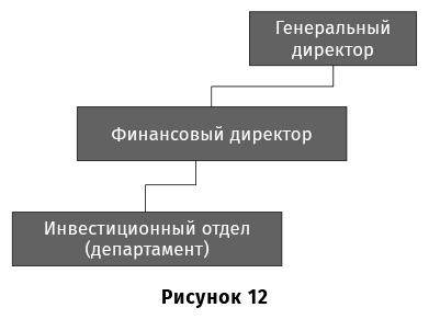 В виде отдельной структуры. В этом случае в корпоративном центре имеется отдельный топ-менеджер с прямым подчинением генеральному директору компании, отвечающий за инвестиции (его должность называется, например, вице-президент по инвестициям). Соответственно, ему подчиняется инвестиционное подразделение. В этом случае обычно подобная же структура имеется и на уровне дивизионов, и на уровне предприятий (рис. 11).