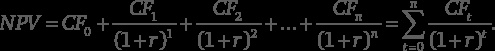 Проведя подобную процедуру со всеми денежными потоками проекта и просуммировав получившиеся «сегодняшние» деньги, мы получим чистую дисконтированную стоимость проекта (Net Present Value NPV, читается «эн-пи-ви»), то есть стоимость проекта для инвестора в «сегодняшних» деньгах: