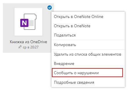 2. Кликните правой кнопкой по записной книжке и в контекстном меню нажмите «Сообщить о нарушении».