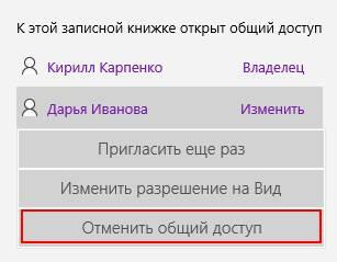 3. Мы не можем лишить владельца прав доступа к записной книжке (но можем лишить прав доступа или изменить права для других участников, даже если доступ предоставил им владелец).