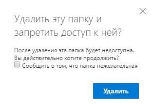 3. В открывшемся окне нажмите «Удалить». Если необходимо, то поставьте перед удалением галочку «Сообщить о том, что папка нежелательная».