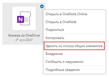 2. Кликните правой кнопкой по записной книжке и в контекстном меню нажмите «Удалить из списка общих элементов».