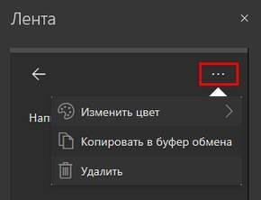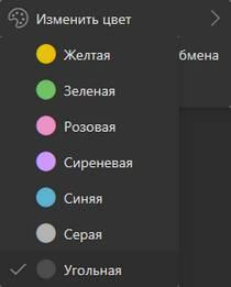 В параметрах заметки три пункта: изменить цвет, копировать в буфер обмена и удалить.