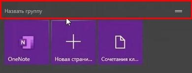 4. В меню «Пуск» автоматически создаются отступы и место для заголовка группы плиток. Можно ввести название группы плиток «OneNote».