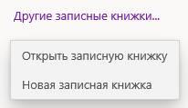 2. В контекстном меню выберите «Открыть записную книжку» (CTRL+O). Либо кликните ссылку «Другие записные книжки». Она расположена под списком записных книжек.