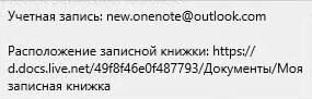 При наведении курсора на название записной книжки появляется окошко с информацией об учётной записи и расположении записной книжки.